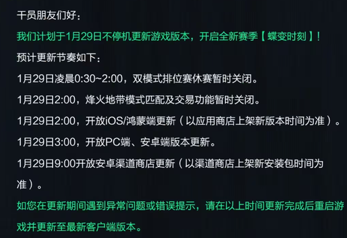 三角洲行动S8更新公告 1月29日更新公告
